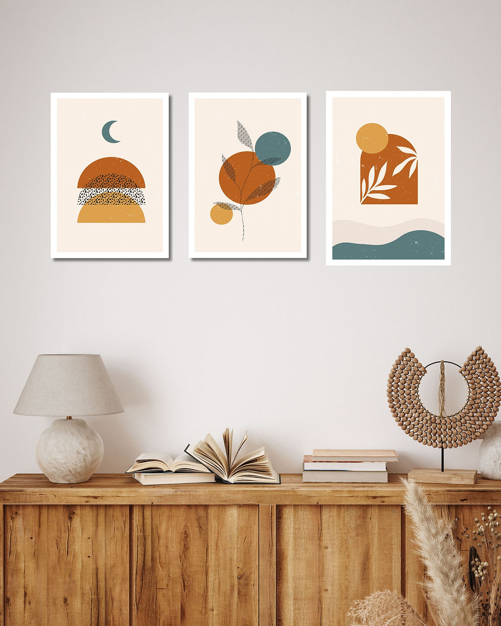 Earthy Boho Botanical Combo Set of 3 – Modern Canvas Home Décor