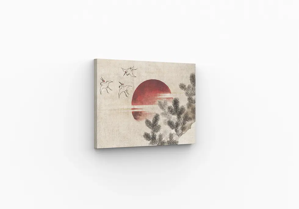 Red Sun and Cranes Landscape Woodblock (c. 1833) – Katsushika Hokusai