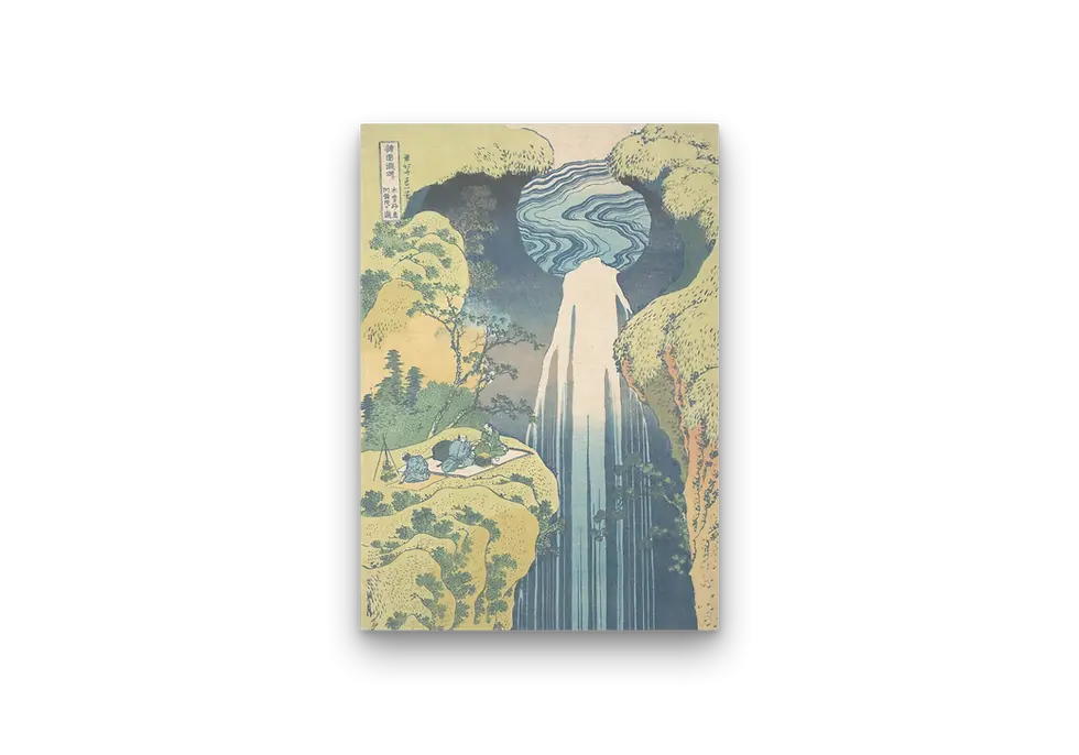 Japanese Cliffside Waterfall Scene (c. 1834) – Katsushika Hokusai
